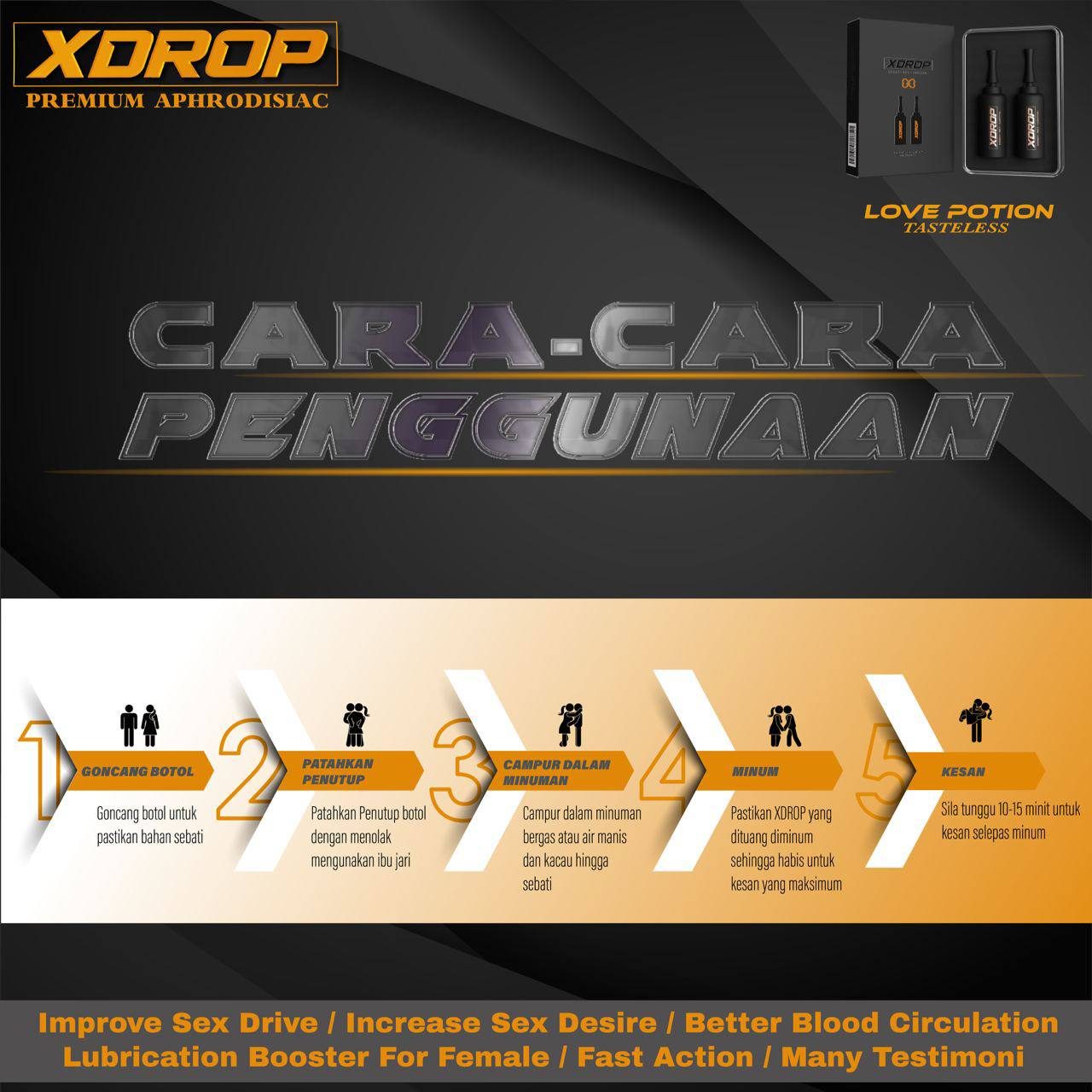 Fungsi XDROP ialah untuk menaikkan kadar hormon testeron lelaki dan hormon estrogen wanita